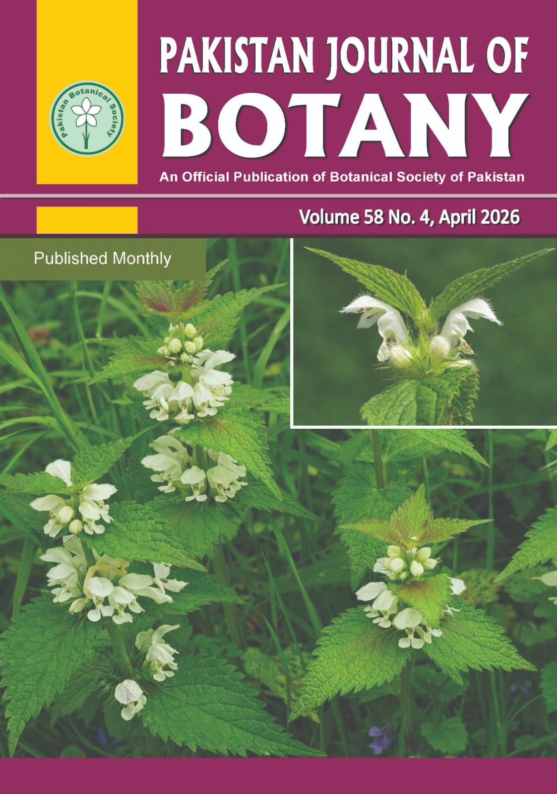 Botanical Society of Pakistan is one of the leading societies that aims to cultivate, promote and disseminate the knowledge of all the branches of plant sciences. BSP provides an opportunity to active research workers to present their results and to generate discussions for further planning of their research. Pakistan Journal of Botany (PJB) is a peer-reviewed bi-monthly publication of the Botanical Society of Pakistan. PJB is being published since 1968. The PJB publishes original, innovative research articles including reviews on all aspects of plant sciences including Physiology, Biochemistry, Systematics, including Molecular Phylogeny, Evolution, Genetics, Biodiversity and Conservation, Paleobotany, Ecology, all plant groups and allied organisms including Algae, Cyanobacteria and Fungi. To fulfill our mission of spreading innovative and meaningful research on plant sciences, we keep our publication charges low to encourage brilliant researchers who are unable to pay higher charges.